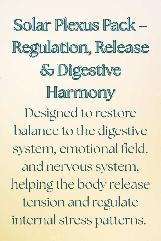 The Solar Plexus Kit is designed to restore balance to the digestive system, emotional field, and nervous system, helping the body release tension and regulate internal stress patterns.
